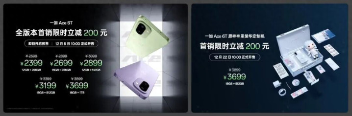 最近知名数码博主爆料称:“听说最近有一些‘已发布’中端机扛不住内存涨价的压力,过段时间要涨价!”看到这个消息后,有网友表示算是懂了一加Ace 6T的定价操作,毕竟其相比一加Ace 6主要就是换成了成本更低的骁龙8 Gen5,但原价居然和一加Ace 6相同,都是2599起步,不过一加Ace 6T首销期间限时立减200元。